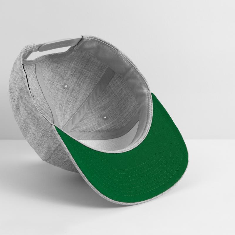 - Flat but flexible brim. Underside is green.